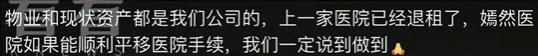 八里桥公园内的知情人士透露:物业和现资产都是属于他们公司的,上一家医院已经退租了,嫣然天使儿童医院能顺利平移医院手续,我们一定说到做到。